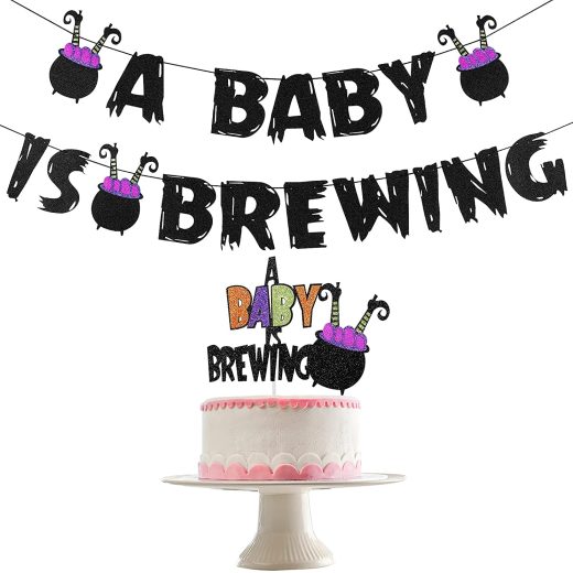 A Baby is Brewing Baby Shower Decorations- Glitter A Baby is Brewing Banner and Glitter A Baby is Brewing Cake Topper,A Baby is Brewing Baby Shower Halloween Decorations,Halloween Baby Shower Decorations,Halloween Decorations