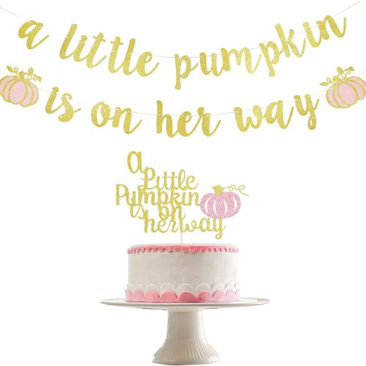 A Little Pumpkin is On Her Way Banner Gold Glitter and Glitter A Little Pumpkin is On Her Way Cake Topper- Little Pumpkin Baby Shower Decorations,Fall Baby Shower Decorations Girl ,Pumpkin Baby Shower Cake Topper