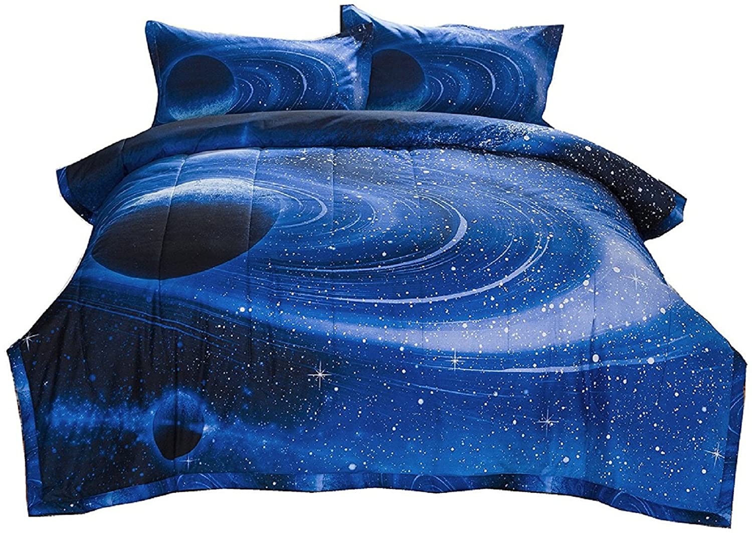 A Nice Night Blue 3 Pieces Comforter Set Galaxy Bedding Set Full Size with 2 Matching Pillows