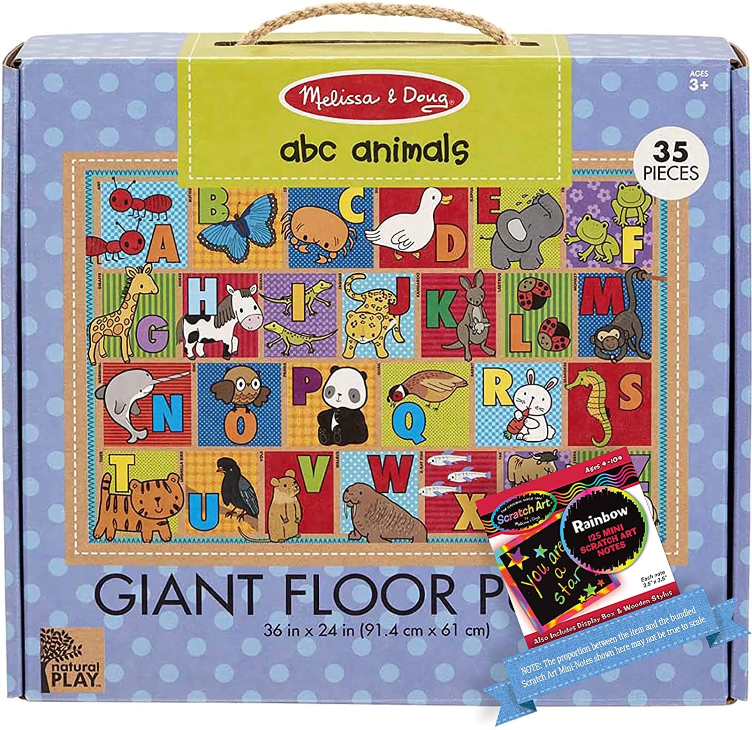 ABC Animals: Natural Play Giant Floor Puzzle Bundle with 1 Theme Compatible M&D Scratch Fun Mini-Pad (31373)