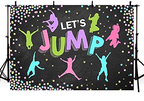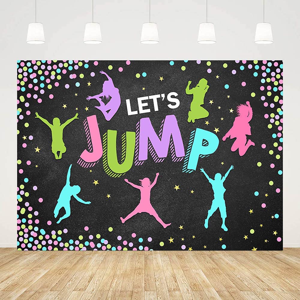 ABLIN 7x5ft Lets Jump Party Backdrop Colorful Teen Boys Girls Bounce House Trampoline Glitter Stars Background Play and Dance Birthday Party Decorations Cake Table Banner Decor Props