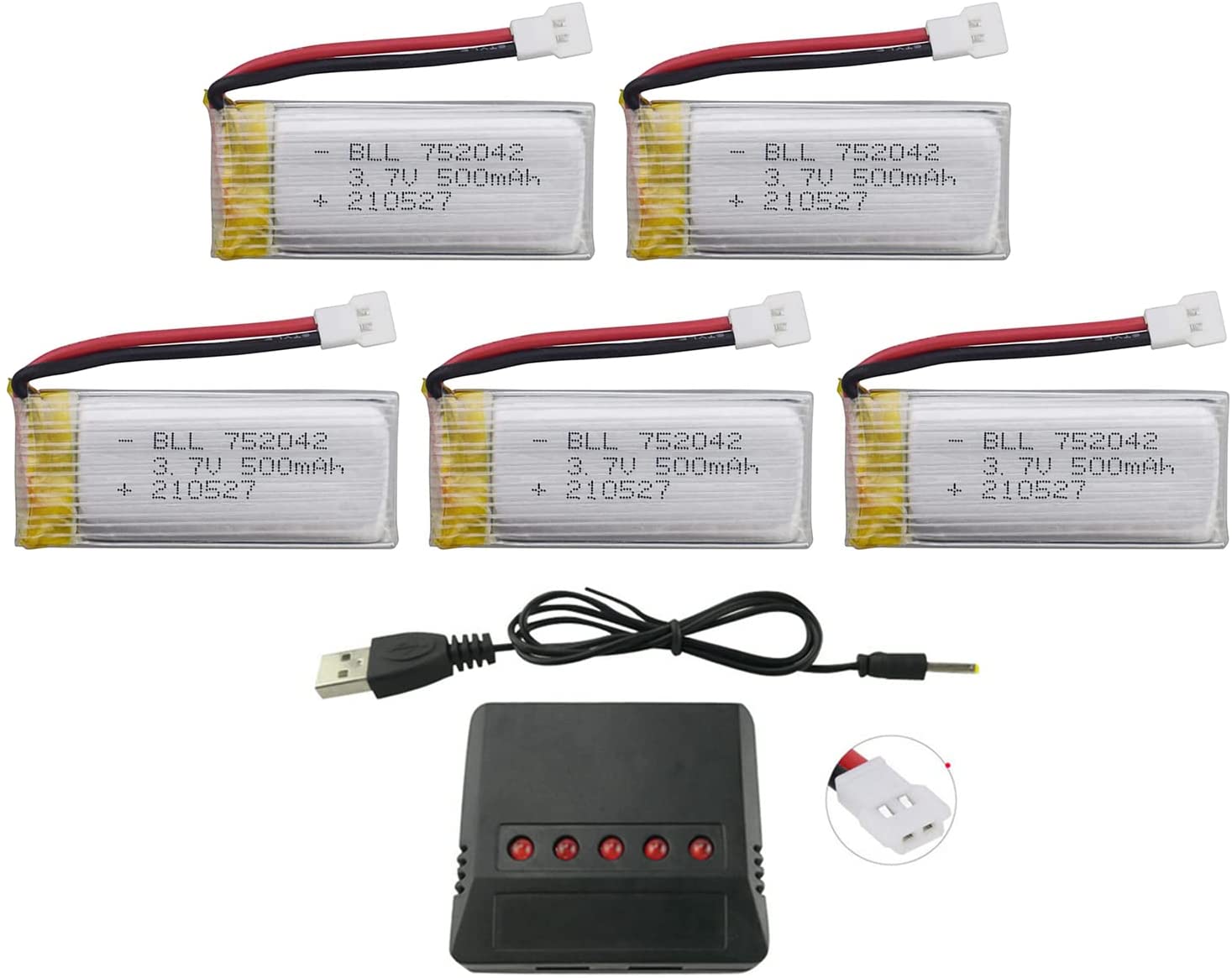 Accessory 5PCS 3.7V 500mAh 25C Battery with 5-in-1 Charger for JJRC H31 H37 H6D Hubsan X4 H107C H107D H107L H107P H108 UDI U816A SYMA X5C X5SW HS170 HS170C Drone