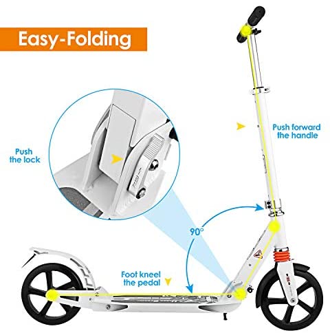 [Smooth and Fast Ride]: – The 2 wheels scooter with high durable 200mm big wheels, Dual Suspension System, precision ABEC-7 bearings reduce vibration and make a smoother ride and creates an incredibly smooth glide, perfect for City/Urban/Suburban pavements.