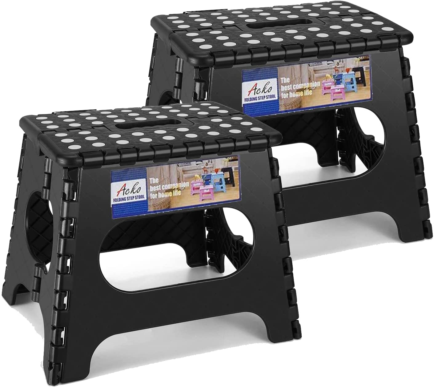 Acko 11 inch Folding Step Stool Lightweight Plastic Step Stool – 2 Pack – Foldable Step Stool for Adults,Non Slip Folding Stools for Kitchen Bathroom Bedroom (Black, 2 Pack)