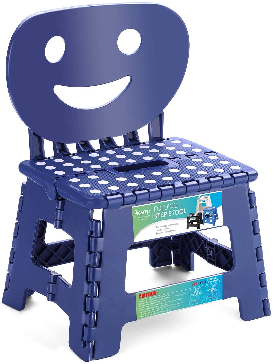ACSTEP Folding Step Stool with Smile Back Support for Kids,9 inch Perfect Height for Toddler Toilet Training Mommy Helper Royal Blue
