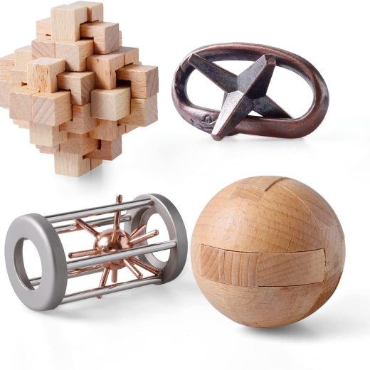 *BRAIN TEASER PUZZLES ADULTS AND KIDS* 2pcs Zinc alloy 3D metal puzzles and 2pcs 3D wooden puzzles are smooth for brain game; it doesn’t easily bend or break even when thrown or stepped on. These brain teaser wires hand puzzles are a healthier way to passing time, assembly puzzles and disentanglement puzzles, practice focus and concentration, get them as an IQ test challenge game in limited time, bring lots of thinking fun. *GREAT PUZZLE GIFT FOR EVERY OCCASION* Brain idea gift puzzle box for Christmas gifts, office gifts, birthday gift, Halloween gift, class reward etc. Enjoy puzzle toy in car, at school, at home, or at office, the brain puzzle toy is easy to take everywhere. These are designed as a good size and light, handheld puzzle travel must-have. *DURABLE AND SAFE* 3D brain teaser metal and wooden mind puzzles are well made and constructed, the IQ puzzles 3D have great quality and held up easily and nicely, you can play or store them where you want, these logic puzzles also can be decoration at home or working desk. *BENEFITS* IQ puzzles toy entertainment for puzzle game, family game or party game, it also is a great opportunity for parents and children interact together. Moreover, it can be a good fidget puzzles toy play everywhere, challenge your mind, patience and help develop the intellect. Good for IQ development and imagination. *SERVICE* If you are not completely satisfied with the 3D brain teaser puzzle Toy logic puzzle box, let us know and well give you a satisfactory solution. For a risk-free purchase click Add to cart.