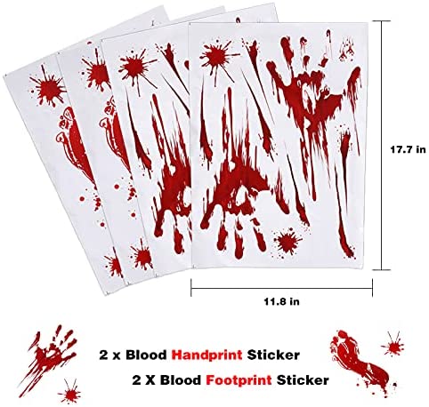 Great Value Halloween Decorations Set: You will get 1 string bloody realistic weapons banner, 1 bloody table cover, 2 handprints stickers and 2 footprints stickers. Perfect Halloween Decor: These bloody decorations can be used to set horror movie scene or decorate Halloween party, spooky party and haunted house. Suitable for bathroom, kitchen, wall, window, doorway, office, classroom. Quality Material: The bloody weapon banner is made of thin and bendable laminated sheet of plastic, including 4 kinds of horror props-knife, butcher knife, hacksaw and plier. The table cloth is made of quality plastic material. The bloody handprints and footprints stickers are made of self-adhesive PVC. Easy to Use: The bloody garland and table cover can be used directly, hang on the wall and spread on the table. The Halloween stickers can adhere to any clean and smooth surface, like door, floor, stairs, mirrors. Just peel and stick. Product Size: The hanging banner comes pre assembled and its length measures about 6.9ft. The blood stianed plastic table cloth is 102 inch long by 51 inch wide, which can cover most tables. The footprints and handprints stickers are adult sizes, giving more creepy feeing.