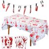 Great Value Halloween Decorations Set: You will get 1 string bloody realistic weapons banner, 1 bloody table cover, 2 handprints stickers and 2 foo…