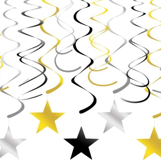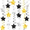 Adeer Gold Silver Black Star Hanging Swirl Decorations Stars Streamers Foil Swirls for Ceiling Decorations Graduation Party Supplies Black and Gold Party Decorations, Pack of 30
