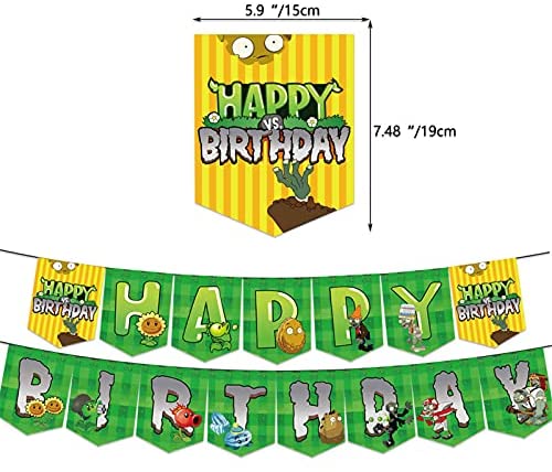 Plants vs Zombies Party Decoration:The Perfect Cartoon Theme Party,Children who like the game of Plants vs.Zombies, give him or her our Plants vs. Zombies party suit as a gift, Use our suit to decorate the entire monster theme party,to welcome the little monsters to your childs party. Package Includes:1×Plants VS Zombies happy birthday banner,1×Cake Topper,20×Cupcake Topper,20×Latex Balloon,1×Ribbon,in Total 43Pieces.Throw an unforgettable birthday party for your childs. Unique Design:3D printed patterns,colorful and more three-dimensional,a popular suit specially designed for children.Zombies, Sun-flower,Peashooter,Potato Mine, Jalapeno, Torch-wood etc elements;Used for birthday parties, game parties, baby shower, photography props. High Quality:All of them could be reused several times. It has good wear resistance,is not easy to fade, deform or break,and can serve you and your friends for a long timeenjoy the Plants VS Zombies Party Supplie with family or friends. AFTER-SALE SERVICE:You will fall in love with the happy hour that“Plants VS Zombies”Party decoration brings to you.But your satisfaction will be our biggest motivation.If you are not satisfied,we will refund you 100%.