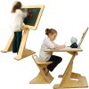 GROWS WITH YOUR CHILD. Looking for a multifunctional creative space for play and study This clever, easy change design allows you to adjust the height of both desk and chair to fit your child as they grow. A great chalkboard easel for toddlers and preschoolers, it then easily converts to a kids desk and chair set with three different height combinations, right up to adult size! LARGE MAGNETIC CHALKBOARD DRAWING EASEL. The perfect creativity station, for your preschool age child. As a large blackboard kids art easel it provides plenty of drawing board space making it awesome for a toddler, or flip the board over to make a cool and crafty art desk! ART TABLE AND CHAIR FOR KIDS. What a great childrens or toddler art desk and chair set! This wooden multifunctional adjustable table and chair combination makes the perfect craft area with clever storage options for pencils and pens. A creative option for creative kids! STUDENT STUDY DESK AND CHAIR SET. Once your child hits elementary school age, you might be thinking it is time to invest in a good quality kids desk that will work for them right through into their teens. The modern wooden design makes it a great childs desk option for boys and girls of all ages. OPTIONS AVAILABLE- Blackboard / Chalkboard and Whiteboard variations available.