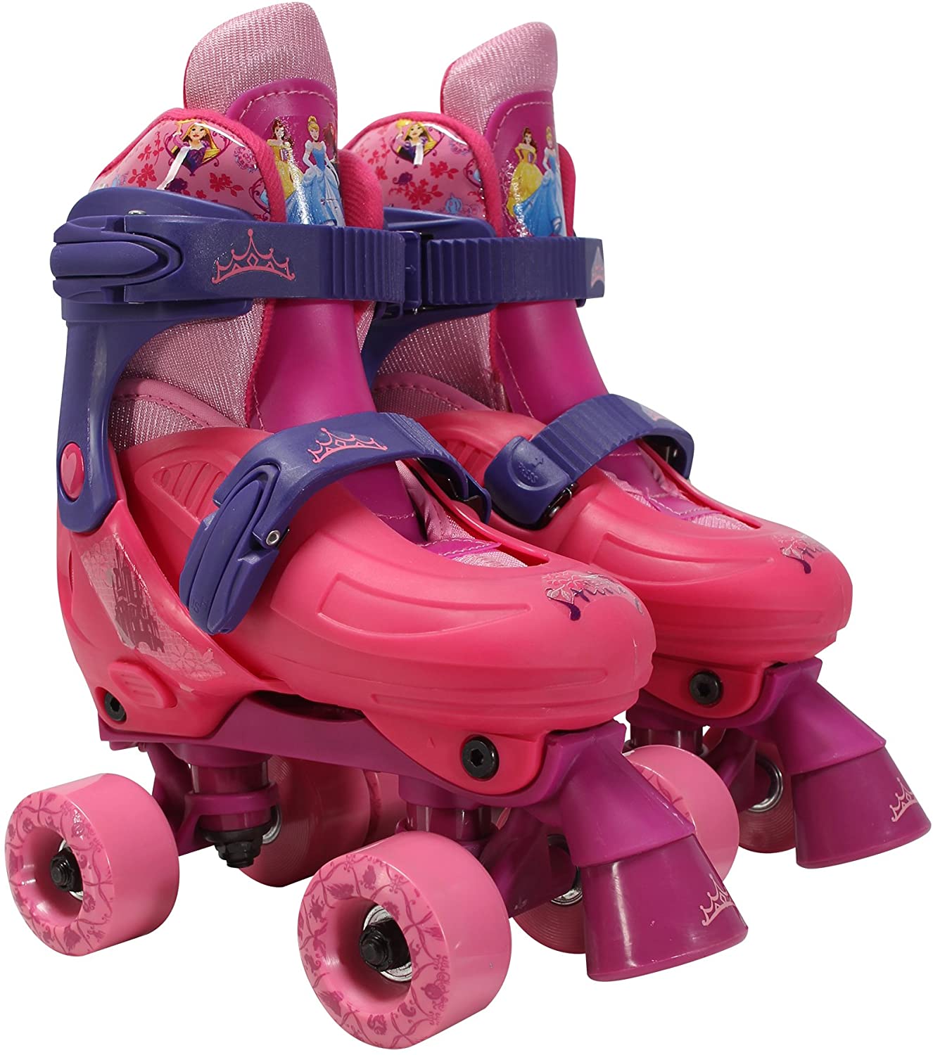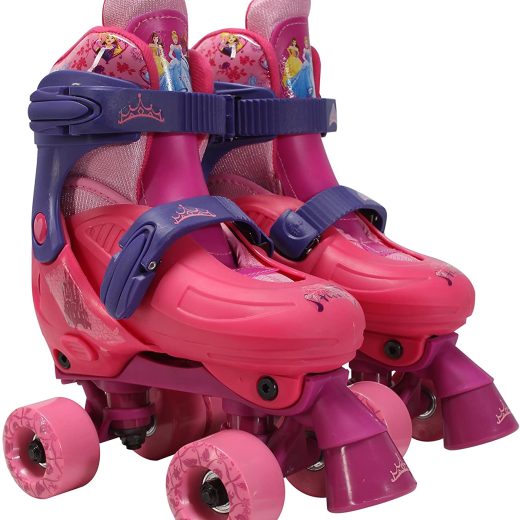 Adjustable Princess Glitter Childrens Quad Roller Skates, Junior Size 10-13