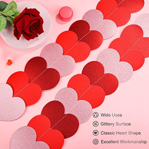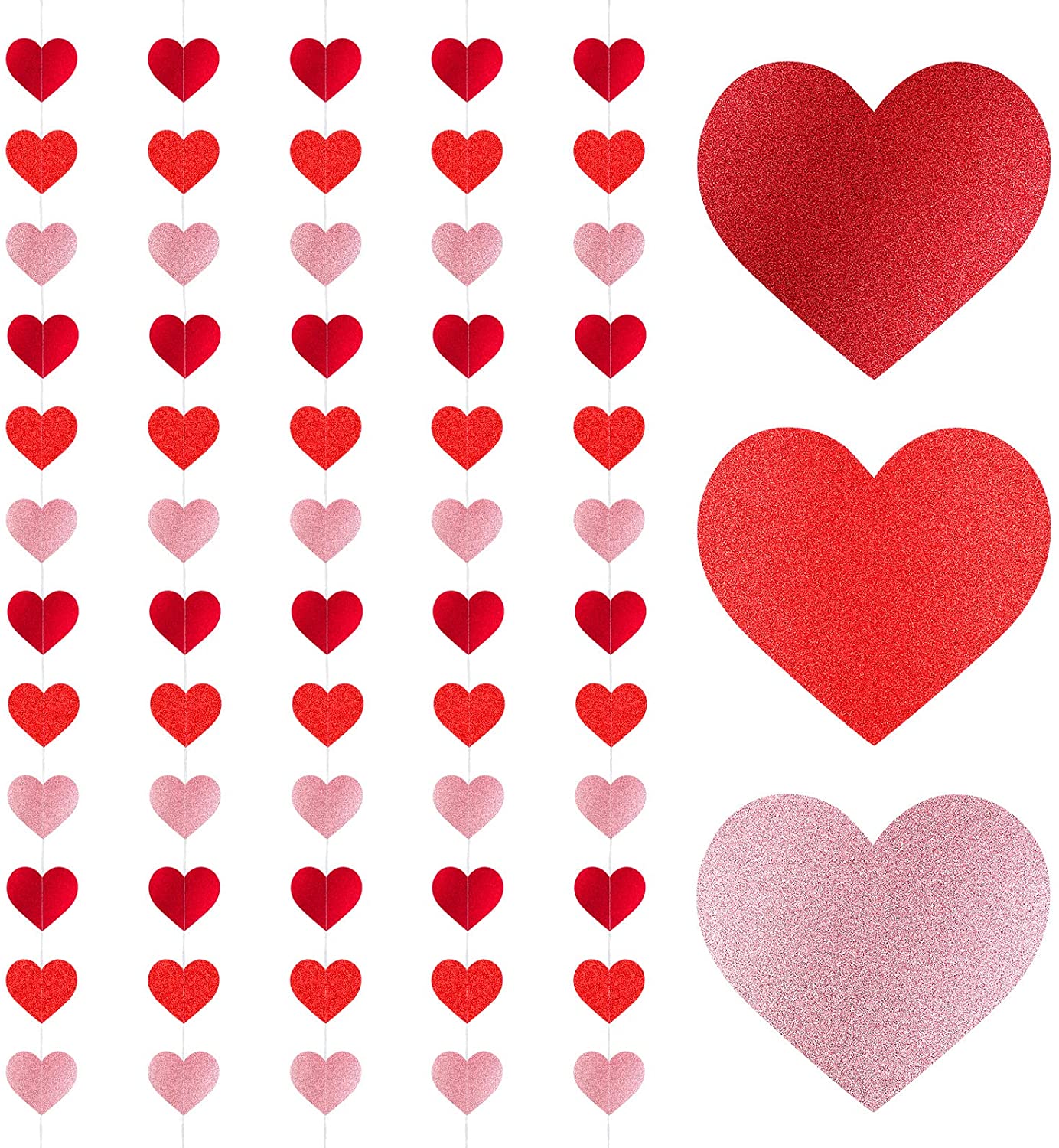 ADXCO Valentine Heart Garland Banner Glittery Valentines Day Decor Banner Hanging Heart Garland for Valentines Decorations, Engagement, Anniversary, Indoor Party Favors