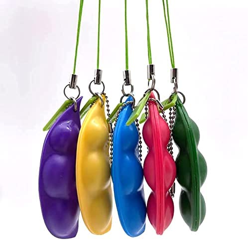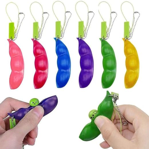 6PCS Edamame Fidget Keychain Colour:Yellow,Blue,Red,Violet,Green,Pink