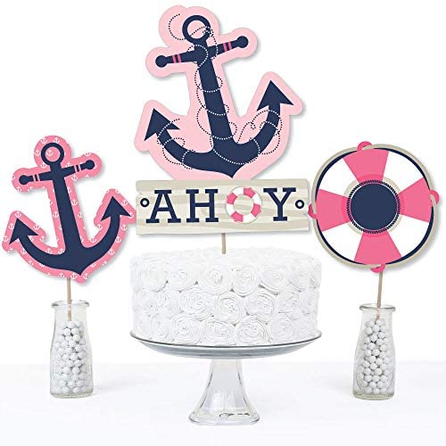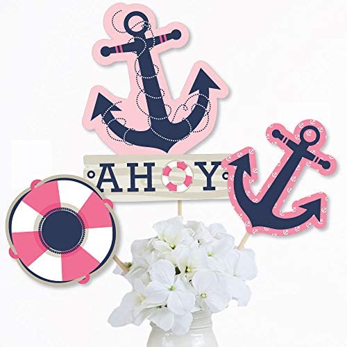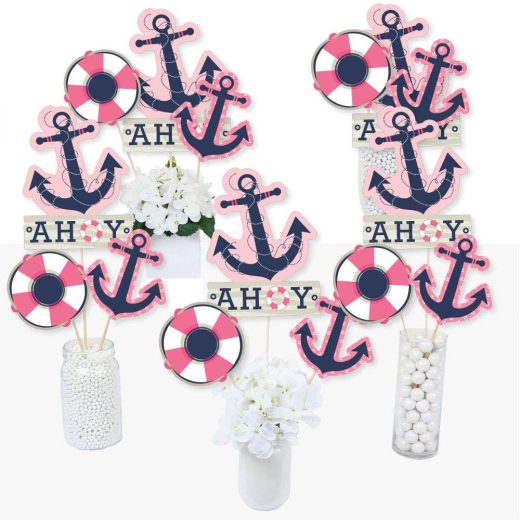 Ahoy – Nautical Girl Centerpiece Sticks INCLUDES 15 pink and blue table toppers in three different shapes, 15 wooden dowel sticks and stickers for …