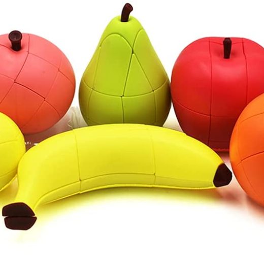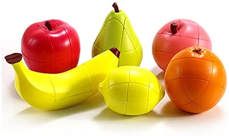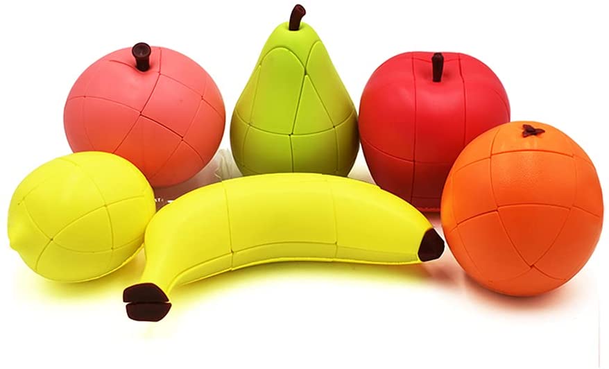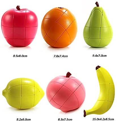 AI-YUN Speed Cube Set of 6 Pack, Simulation Fruit Magic Cube Set of Apple Pear Banana Orange Lemon Peach, Educational Puzzle Toys Gift for Kids