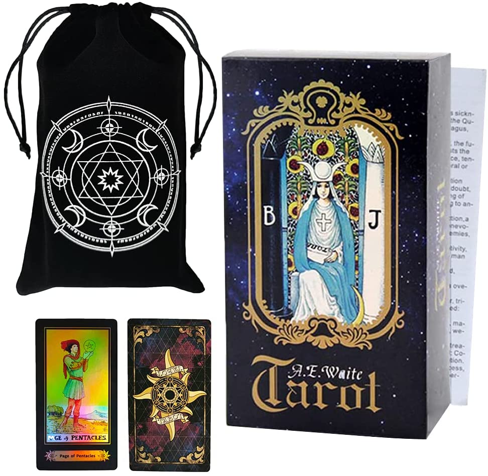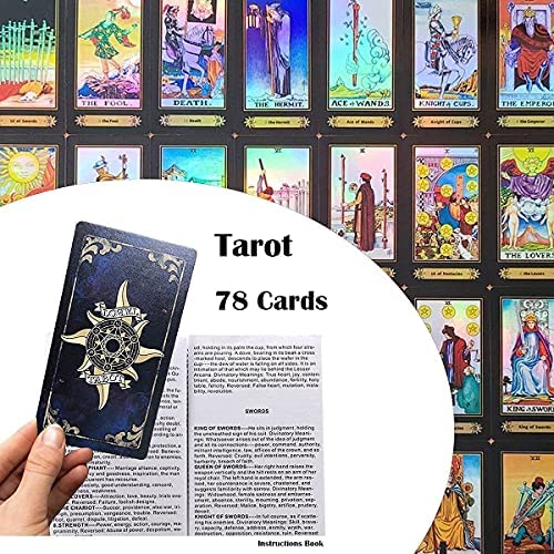 Tarot Cards with bag–78 cards with flash effect, Classic Tarot Cards Deck, including Velvet Bag and Manual/Instruction.If you need, please contact us to get the electronic version of the manual Suitable for beginners–For those who love tarot cards, this is the best way to let everyone learn more about black magic tarot cards Good for Collection–It is made of high-quality paper, durable, feels good, and can be used for a long time. And it is so mini, portable and can be used at any time Relieve stress–If you are confused in your life and feel stressed, you can use Tarot cards to relieve yourself or release stress You can use predictive art,analyze the symbolic meaning of cards,and explain the problem by placing randomly selected cards from the suit in a certain arrangement.It can be used for marriage,health,fortune. (Package: 1 tarot card,1 bag,1 manual)