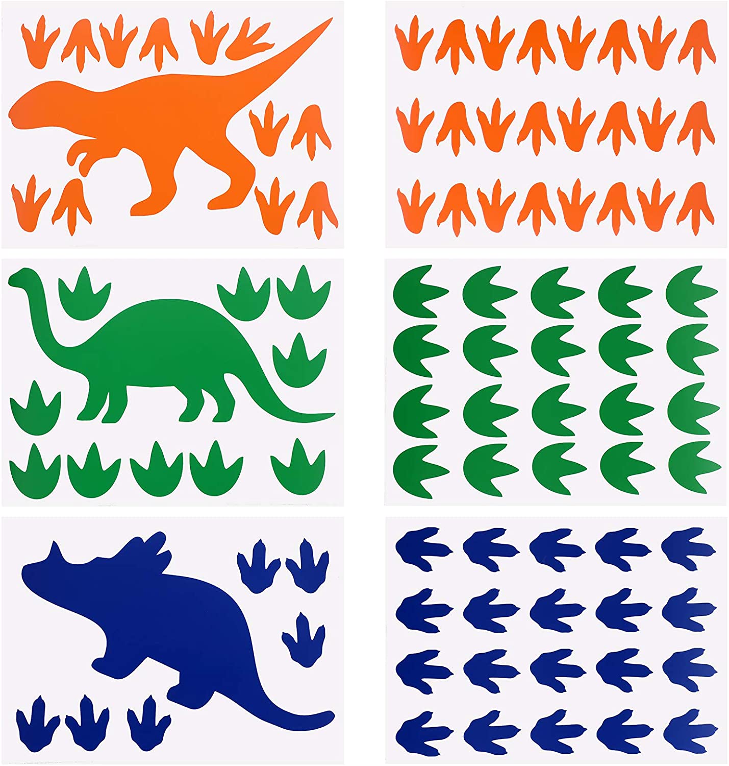 AIEX 6Pcs Dinosaur Wall Decals Dinosaur Footprints Stickers for Boys Girls Bedroom/Nursery/Classroom Decoration (Blue, Orange, Green)