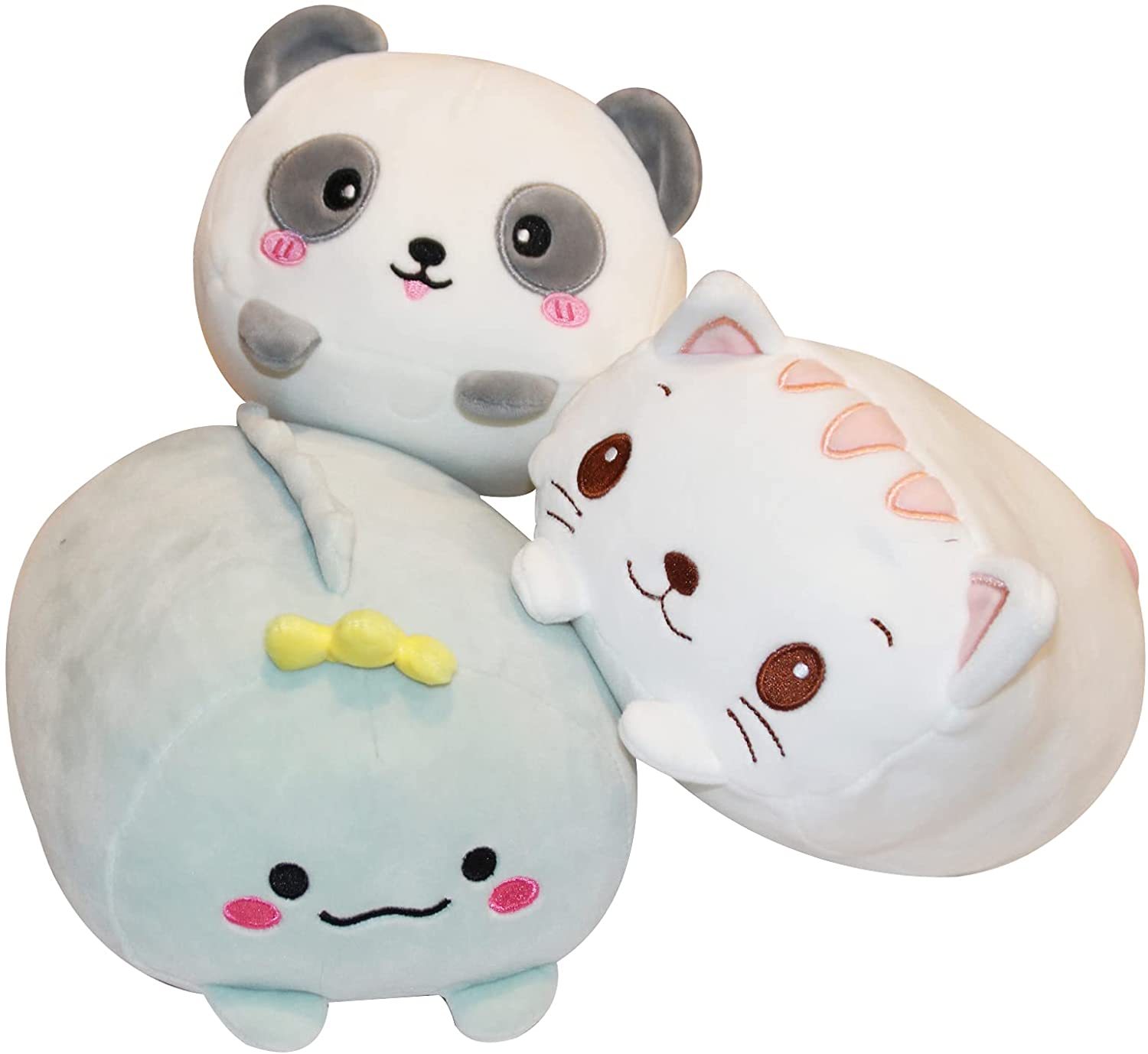 AIXINI 8 inch 3pcs Cute Panda/Cat/Dinosaur Plush Stuffed Animal Cylindrical Body Pillow,Super Soft Cartoon Hugging Toy Gifts for Bedding, Kids Sleeping Kawaii Pillow