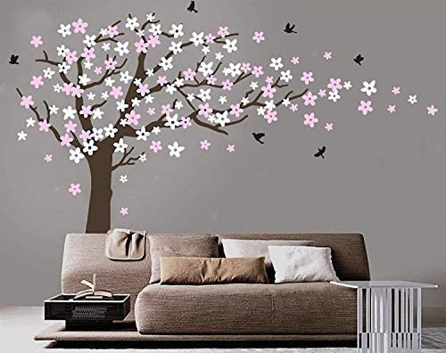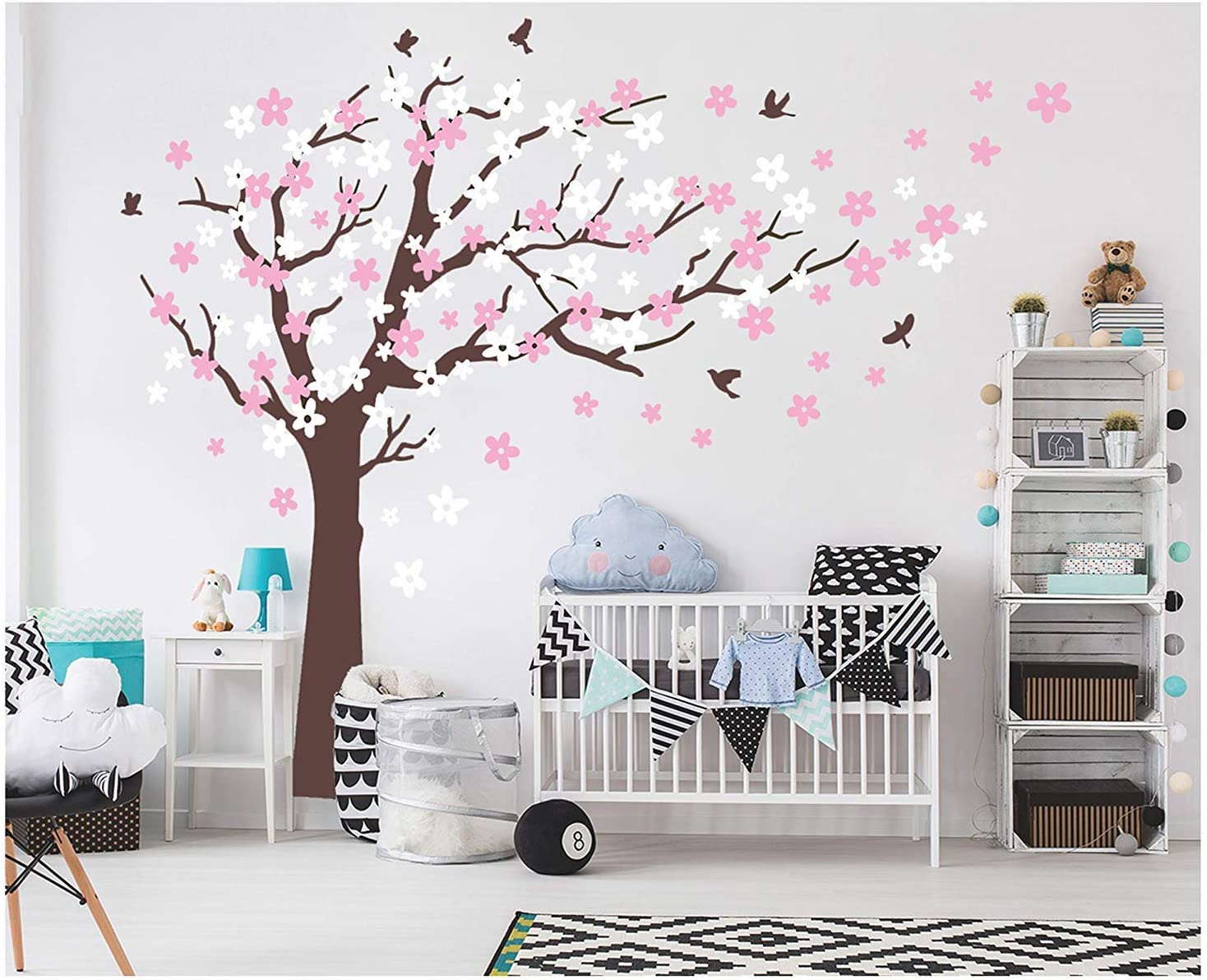 AIYANG Cherry Blossom Tree Wall Decals White Pink Flowers Wall Stickers for Baby Nursery Bedroom & Living Room Decoration (Coffee Brown)