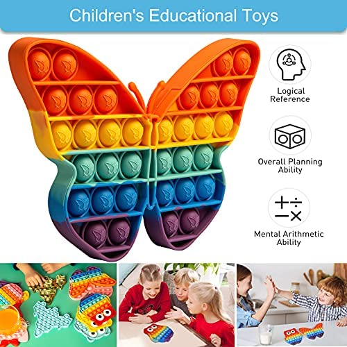 AIZIXIN 1 Piece Pop Bubble Sensory Fidget Toys, Squeeze Sensory Toys, Novelty Gifts for Boys and Girls, Stress Relief and Anti-Anxiety Tools for Kids and Adults (Butterfly,Rainbow)