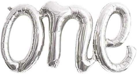 Alchik Hanging Foils Script Balloon u201cONEu201d Word – 20u201d Classic Silver Air Balloons – Set of 1 Balloon – Perfect for Baby Shower, Happy Birthday or Any Party Decorations