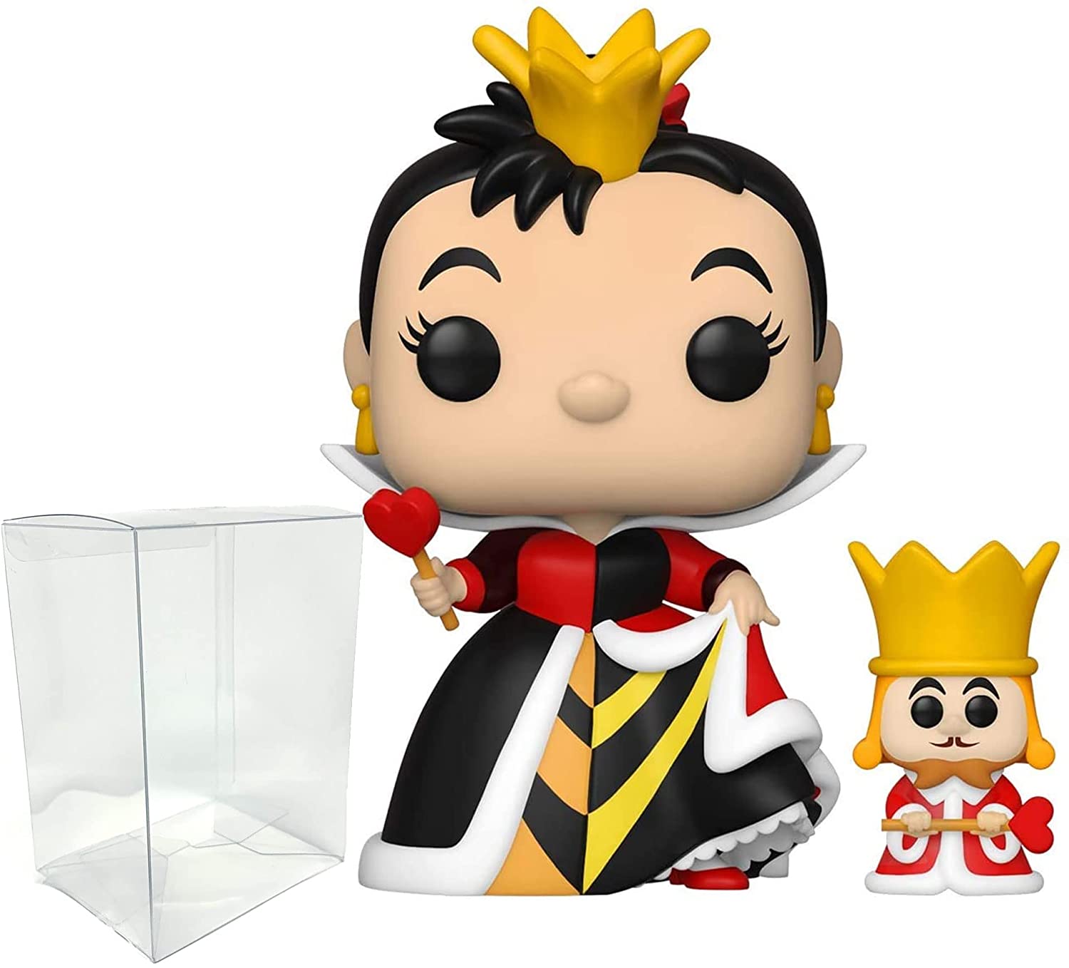 Alice in Wonderland 70th – Queen of Hearts with King Funko Pop Protector Bundle – Queen of Hearts with King Pop Figurine 3.75 Inch with Clear Plastic Pop Protector Case for Collectible Vinyl Figures