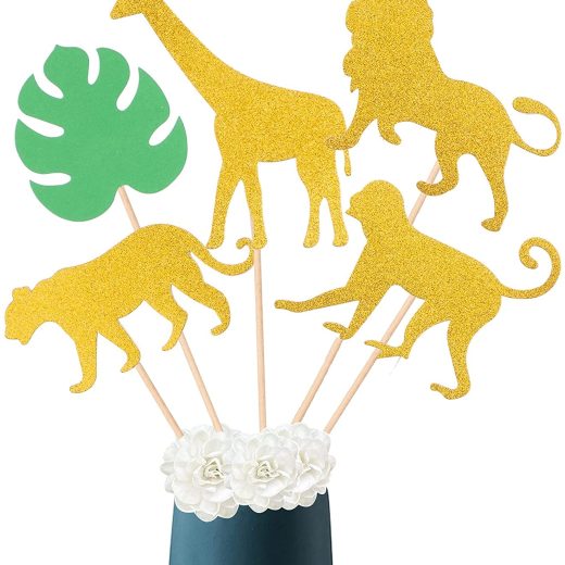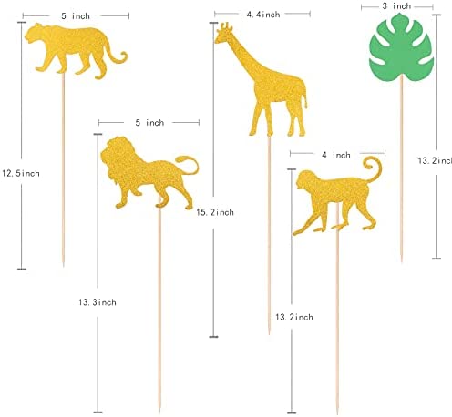 ALISSAR 15-Pack Glitter Gold Double Sided Jungle Safari Animal Centerpiece Sticks-Jungle Safari Animal Party Decorations-Animal Themed Baby Shower Birthday Table Toppers
