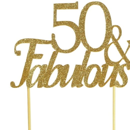 All About Details Gold 50-&-Fabulous Cake Topper, 6 x 8