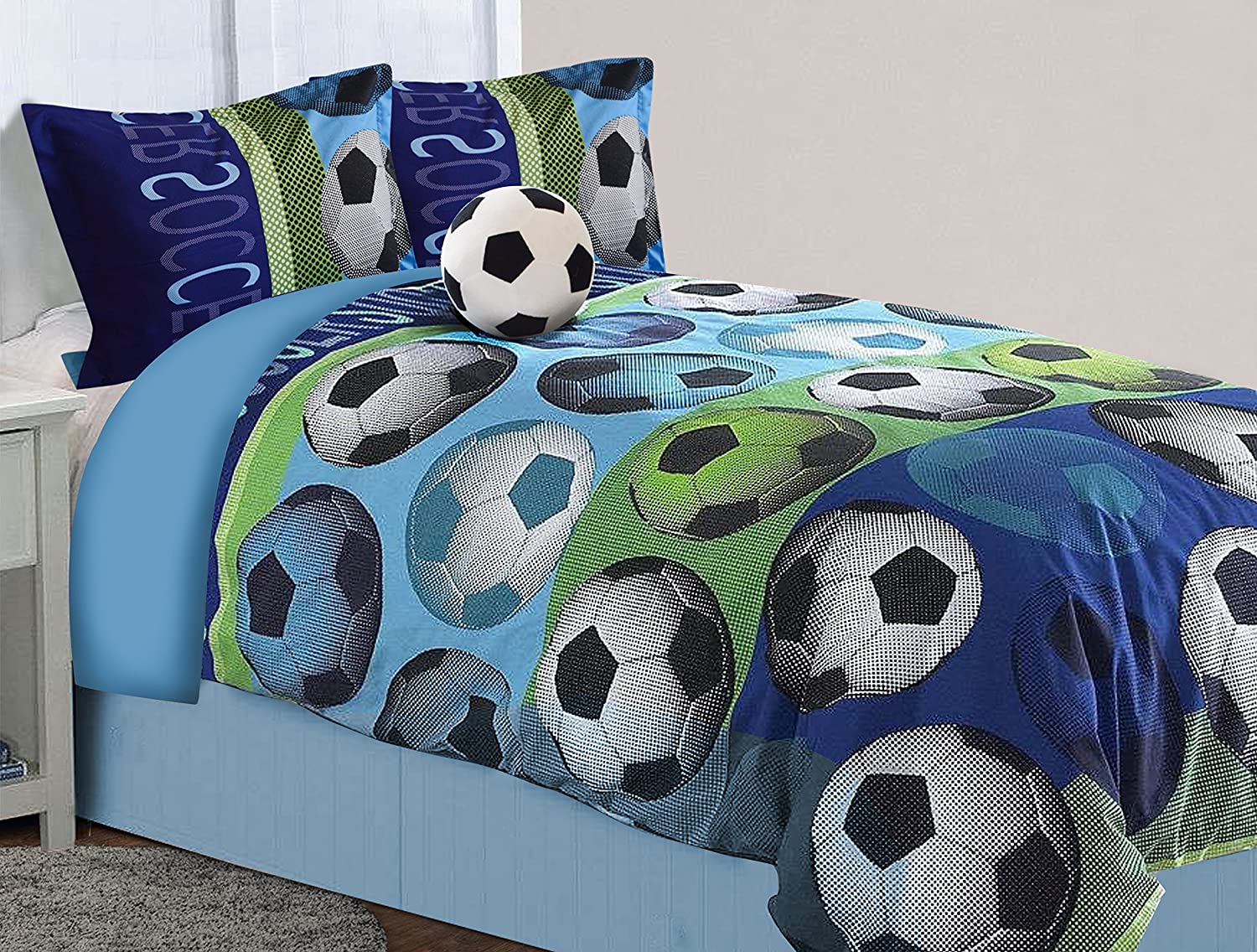 All American Collection 4 Piece Full Size Soccer Comforter Set with Furry Friend (4PC Full Size)