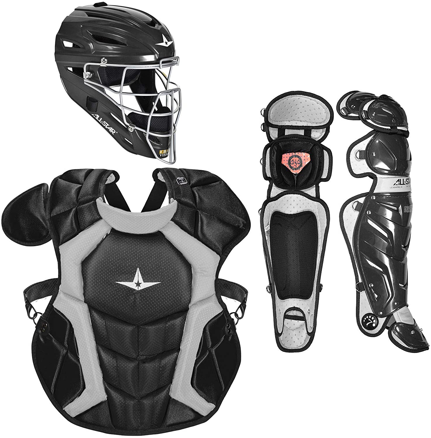 All-Star: Move Forward. Rise Above. Together.All-Star gear provides you with the confidence, protection, and comfort to succeed on the field.The All-Star System 7 Adult Pro Catcher’s Set is full of protection. Includes chest protection designed with durable polyethylene plates to assure sensitive areas are shielded, while still allowing you the mobility to play at your best. Plus, a helmet and leg guards created for the intensity of gametime. This set covers all the bases so you can put in work behind home plate.Proudly distributed by Guardian Baseball.FeaturesProtection. Comfort. Lightweight. This set has it all. Including a NOSCAE-approved helmet, chest protection and leg guards, all in one. Let this set help you get the shopping over with and spend your time on the field. Features include: NOSCAE-approved, supportive and breathable helmet Lightweight chest protection Flexible leg guards All of the essentials in one