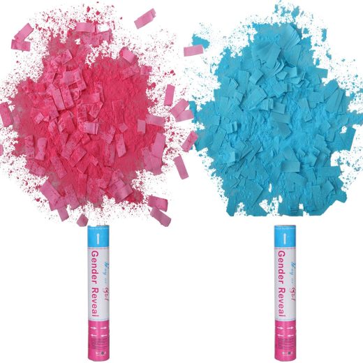Economic pack: One pack gender reveal powder cannon with 4pcs gender reveal confetti cannon. 2pcs blue and 2pcs pink.In each unit bottom,with color sticker. Awesome effect: Just hold,rotate &shoot,it comes out nice corn powder and tissue paper.The fillings can go up from 9ft to 15ft No pollution: The gender reveal confetti fillings are corn starch powder &biogradable tissue paper . Dont worry to make mess.The powder can dissolves in the air.Outdoor using is better. High quality: Gender reveal confetti cannon fillings are made of fireproof &biogradable tissue paper ,and food grade corn starch powder. It must bring amazing effect at your gender reveal party 100% Service after sale warranted: We are sure you satisfy our product. If having any quality problem.we give refund. Attention:Please shake it up and down before rotating to make powder loosing . Kids under 15years old prohibit
