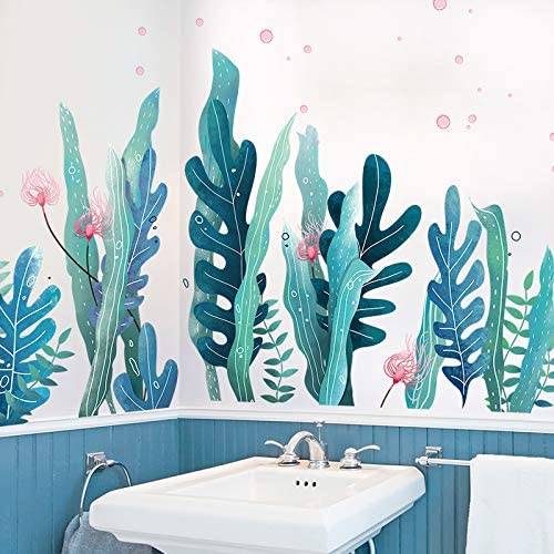Amaonm Creative Cartoon Removable 3D Under The Sea World Nature Scenery Wall Stickers Ocean Grass Colorful Seaweed Baseboard Wall Decal for Wall Corner Nursery Room Bathroom Living Room (Grass)