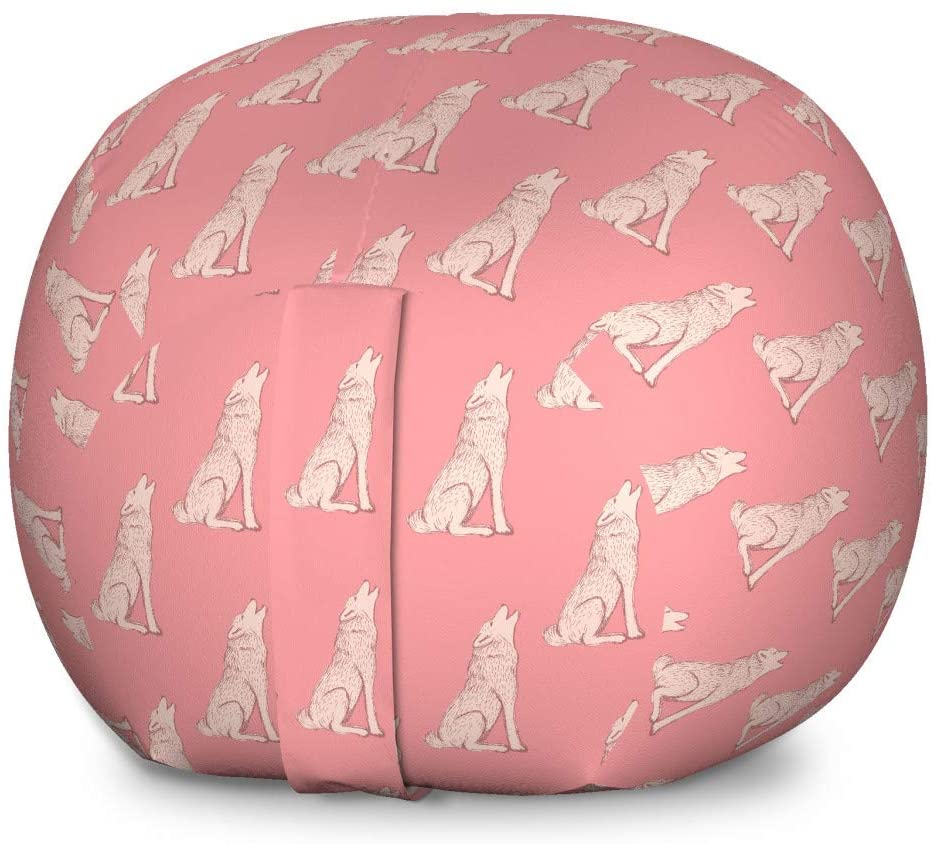 Ambesonne Animal Storage Toy Bag Chair, Howling Wolf Sketch Style Vintage Look Design, Stuffed Animal Organizer Washable Bag, Large Size, Blush Eggshell