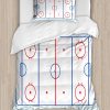 Ambesonne Hockey Duvet Cover Set, Ice Hockey Field in Blue Tones and Red Graphic Outline for Sport Events, Decorative 2 Piece Bedding Set with 1 Pillow Sham, Twin Size, Pale Blue