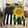 American Flag Bedding Set Twin Size for Kids Boys Bedroom,Yellow Sunflowers Bed Duvet Cover Set,Retro Stripes Stars Comforter Cover Black Decor 2 Pieces 1 Duvet Cover with 1 Pillowcase No Comforter