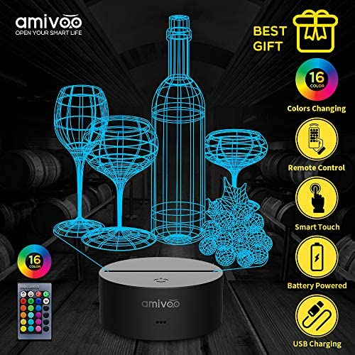 Be the first to review “AMIVOO Wine Cup Wine Bottle 3D Night Light 16 Color Changing with Remote 3D Optical Illusion Lamp Birthday Christmas Gifts for Wife Husband Men Adults Home Wine Bar Christmas Decoration” Cancel reply