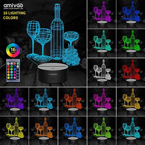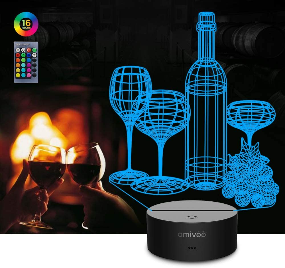 AMIVOO Wine Cup Wine Bottle 3D Night Light 16 Color Changing with Remote 3D Optical Illusion Lamp Birthday Christmas Gifts for Wife Husband Men Adults Home Wine Bar Christmas Decoration