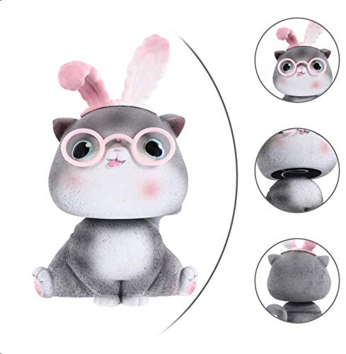 Amosfun Cat Bobblehead Ornaments Shaking Head Rabbit Ear Lucky Cat Figurines Animal Dancing Figure Toy Car Dashboard Decorations for Vehicle Home Office Desktop (Grey A)
