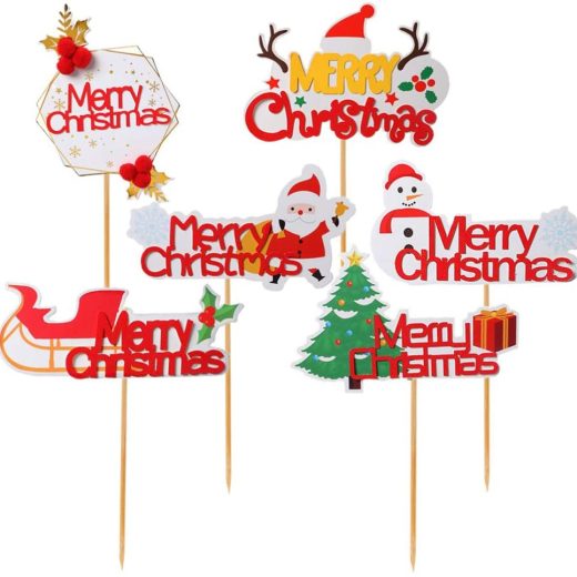 Amosfun Christmas Party Cake Topper Merry Christmas Cake Picks Santa Snowman Cupcake Insert for Xmas Holiday Party Supplies 6pcs