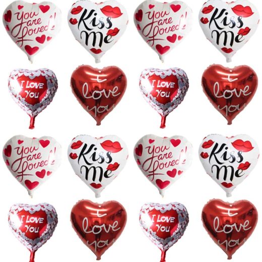 Amosfun Pack of 20 I Love You Balloons Valentines Day Party Decorations Heart Foil Balloon Kiss Me Ornaments Romantic Props for Wedding Supplies Random Style