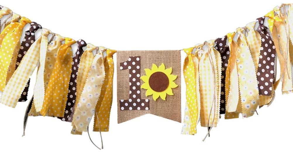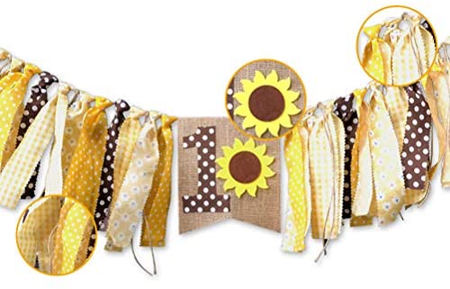 Amosfun Sunflower 1st Birthday Party Highchair One Birthday Burlap Banner Summer Highchair Bunting Garland Decorations for Birthday Baby Shower Party Banner