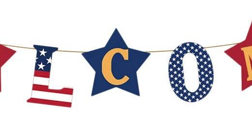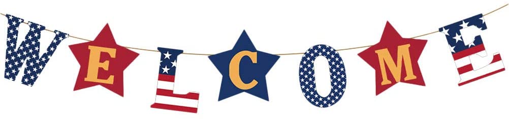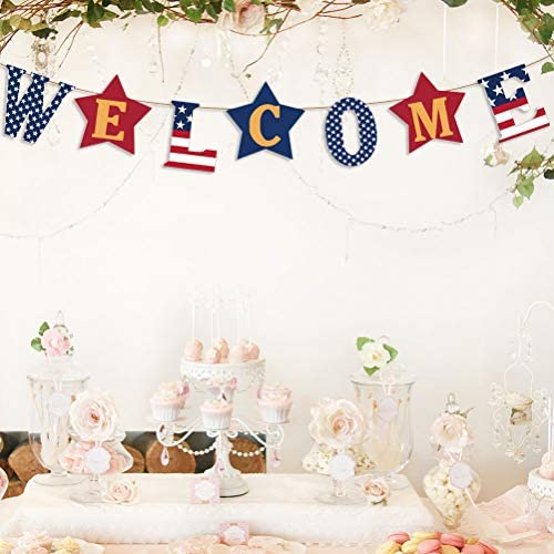 Amosfun WELCOME Letter Banner American Garland Banner America Flag Bunting Banner for America Travel Memorial Day Decoration
