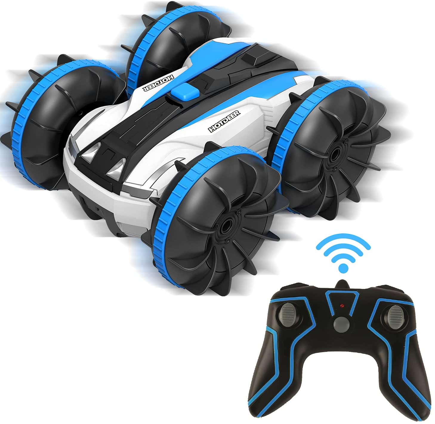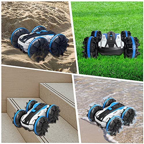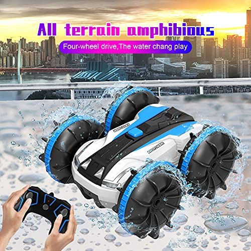 Amphibious operation: remote control car amphibious two-in-one 2.4Ghz four-wheel drive off-road monster truck 360° rotating flip stunt mini remote control car 5-10 years old Christmas birthday gift remote control boat beach toy