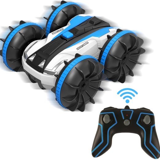 Cool skills: easy rotation and flip 360°, 180° rolling and 360° rotation, double-sided running, four-wheel independent vibration system, gear off-road design can make it easily break through sand, beach, mud, grass or ocean!