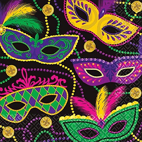 Amscan 501901 Mardi Gras Masks Beverage Napkins, 5