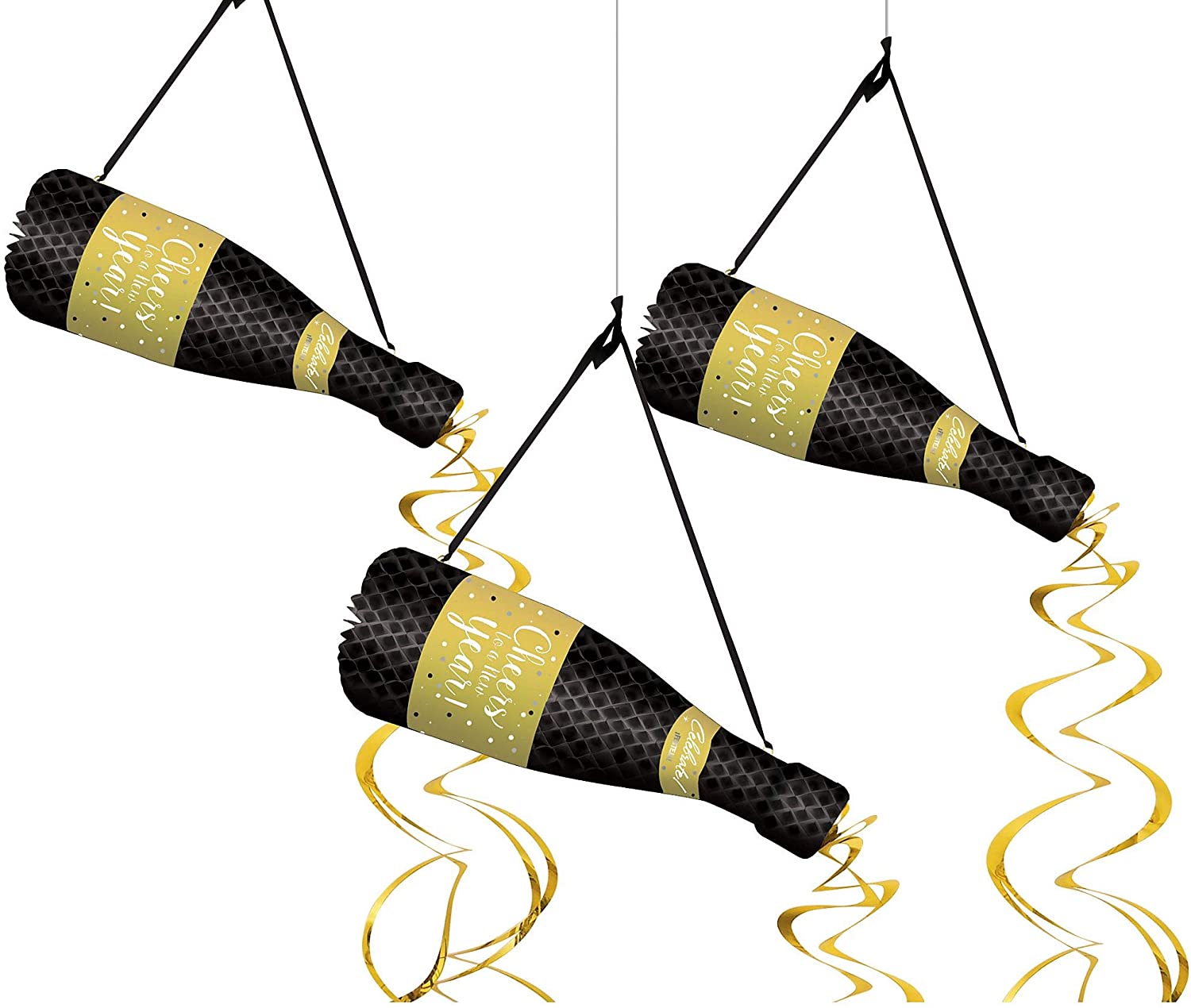 Perfect for your new years Eve celebrations this 3 pc honeycomb hanging decor shaped like champagne bottles is made of paper and foil and hangs 12 …