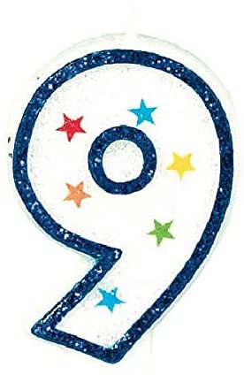 amscan Colorful #9 Birthday Star Flat Molded Candle Party Supplies, White, 3 1/2