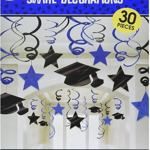 amscan Way to Go Grad! Graduation Party Stars & Swirls Ceiling Decoration (30 Piece), One Size, Multicolor