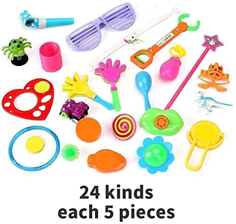 Material: Plastic Certification: ASTM VARIOUS APPLICATION: Carnival prizes, treasure box prizes for teacher, treasure chest toys for classroom, birthday party toy assortment, pinata filler toy, Halloween prizes and toys, goody bag toys, prize box toys, party giveaways,etc. MULTIPLE VARIETIES PARTY FAVOR PACK: 24 KINDS of toys as pictures show. SAVE TIME & ENERGY for PARENTS and TEACHERS: Solve the difficulty in collecting small toys or prizes for kids birthday party and prize box. HIGH QUALITY & BEAUTIFUL COLOR BOX: Very decent present for kids–they will be excited and enjoy these prizes and toys for a long time. Frequently Bought Together: 150 pcs prize box toys; 150 pcs party favor assortment; 120 pcs pinata filler; 120 pcs treasure box prizes; 125 pcs prize box toys for classroom; 120 pcs birthday party favors assortment; 60pcs toy assortments